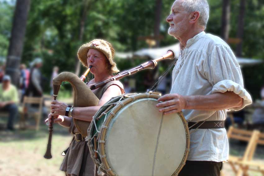 Schaut wackren Handwerkern über die Schulter, feilscht bei den Marketendern, oder verkostet von Met und Swinebraten. Lasst Euch kurtzweylen vom Possenspiel der Gaukler und lauscht den Klängen der Spielleute.